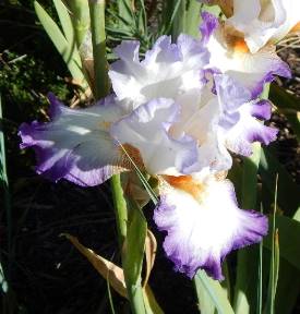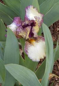 The first week in April brought lots of bloom. Pumila cultivars 'Wild Whispers' and 'Royal Wonder' put on a great show on established clumps, joined by 'Little Drummer Boy'. More new seedlings bloomed: I. pumila, I. attica, and I. suaveolens. Established clumps of I. suaveolens rubromarginata and I. reichenbachii put on a lovely show. A one-year-old grey-white Armenian pumila seedling with a dusky violet spot really caught my eye. The mysterious Vardar Gorge plant opened on April 7, along with its seedling. The first I. aphylla bloom opened on April 11. On the same day, I had an interesting pumila seedling with an orange cast and long, spider-like petals. A one-year-old Iris taochia raised from seed opened April 13. A couple one-year-old seedlings of I. reichenbachii bloomed by mid-April, and an established clump of I. schachtii started on April 15. A hard freeze the morning of the 17th wiped out most of what was in bloom. I. aphylla 'Slick' was waiting in the wings, opening on April 20, followed by 'Ahlburg' on the 22nd. Various other aphyllas bloomed around the same time. Another seedling opened on May 4 from seeds obtained as "Iris reichenbachii", but which appears to be Iris variegata. Two others from the same group of seeds opened later in the month. The last to bloom was I. pallida variegata, from late May through early June.