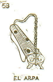 El Arpa. For Honey Comer's Loteria swap, January 2001. |