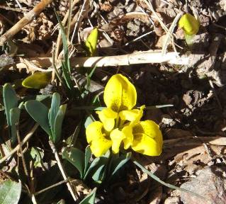 My reticulatas are mostly in a warm and sheltered bed along the front (southeast face) of the house, where they bloom four to six weeks ahead of those in the open garden - a welcome preview of spring. Iris bloom started on with Iris danfordiae February 8, during an unusually warm spell following heavy snowfall a week before. 'Purple Gem' opened on the 11th, soon followed by 'Natascha' and 'Cantab'. The last week of February was cold and snowy, which slowed things down for awhile. The first two weeks of March were warm and sunny, and 'Katharine Hodgkin' bloomed nicely in the open garden, along with more 'Natascha'.