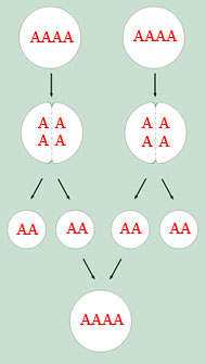 I. iberica x I. iberica: each parent is AA, each sex cell is A, the seedling is AA, just like the parents.