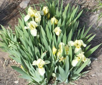 blooming, and the historic arilbreds 'Elmohr' and 'Butterfly Wings'