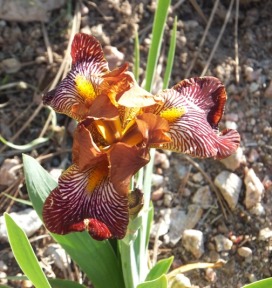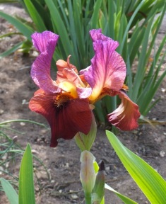 Bearded iris season began on March 24, with the first Iris pumila opening. Iris pumila "clausii" followed a few days later.