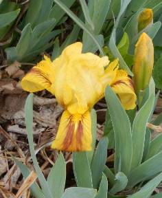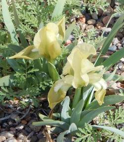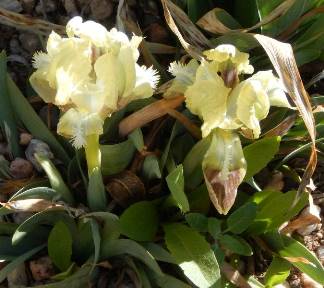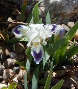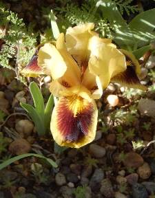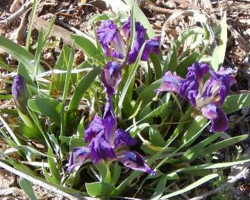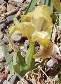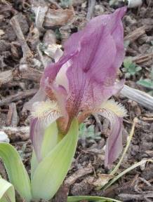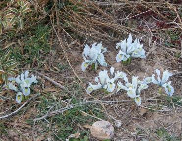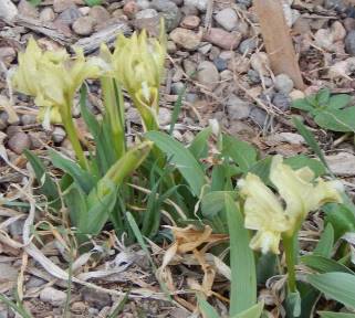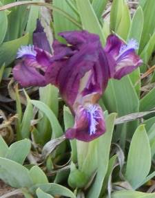 Warm weather the first two weeks in March ushered in pumila season, with a Hildebrandt seedling from SIGNA seed 04A004 opening on March 18, the same date as last year. This one is building a consistent reputation as the first bearded iris to bloom here. On March 23, three more pumilas opened: 'Hobbit' (Miller, '04) an Armenian seedling P002-04, and a taurica P003-01. P002-05 followed on March 25. 'Sudden Butterflies' (Jensen) bloomed the following day. The last weekend of March brought bloom on 'Steppe' (J. Burton, 2011) and two forms of I. attica. 'Hidden Dragon' opened on March 30, followed by 'Keystone Oracle', more pumila and attica seedlings, and I. babadagica.