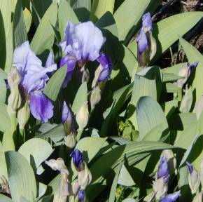 The first hybrid MDB cultivar to bloom was 'Rosa Brooks' on March 28, almost a week earlier than last year. By the first week of April, it was joined by 'Trimmed Velvet', 'Storm Compass', and then a very pale 'Alpine Lake'. SDB season began with 'Pussycat Pink' on April 7. 'Rain Dance' opened on April 12, with 'Heart Stopper' following the next day. 'Abuzz with Charm' and 'Keeno' opened on the 16th. There was a hard frost the following morning, and the irises were slow in bouncing back. 'Kaching' opened on the 19th, but other medians were sill on hold. Things started to pick up again the first week of May, with blooms on 'Starfield', 'Riveting', 'Night Mood', and 'Hot News'. 'Sultry Dreams', the first of the Craig tetraploid medians, opened on May 11. MTBs and BBs were coming into their own by mid-May, with blooms on 'Sun Spirit', 'Butterscotch Blush', 'Rayos Adentro', and 'She's a Doll'. 'Brown Lasso' opened May 21. SPEC-X 'Magyar Medley' and MTB 'Fernie Bridge' ended up the season at the end of May.
