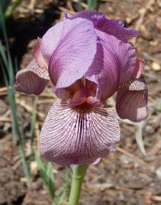 Iris paradoxa atrata gave an early start to aril season, opening on April 9. It's a large clump this year, with many buds opening in succession. Next was the stolonifera hybrid 'Merlin's Magic', beginning on the 13th. A hard frost the morning of April 17 slowed things down a bit, but 'Tadzhiki Bandit' and 'Orion' opened later that day, apparently none the worse for wear. I. acutiloba lineolata opened on the 19th, followed by I. hoogiana purpurea (my first hoogiana to bloom) on the 20th. Another clone of I. paradoxa opened on the 24th, followed by I. stolonifera 'Chocolate' on the 25th. 'Werckmeister's Beauty' opened on the first of May, followed by yet another I. paradoxa clone and then I. barnumae urmiensis. I did not expect bloom on 'Vera' this year, but it opened May 7.