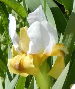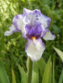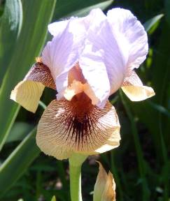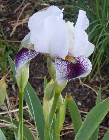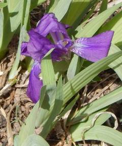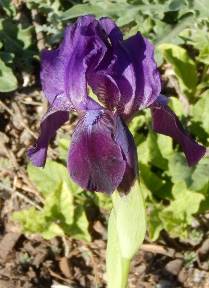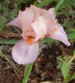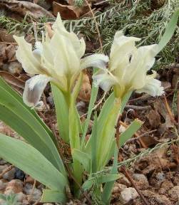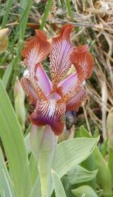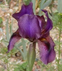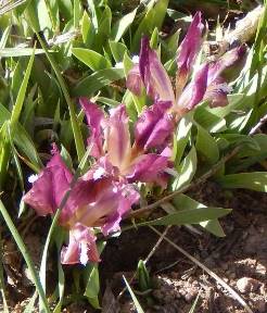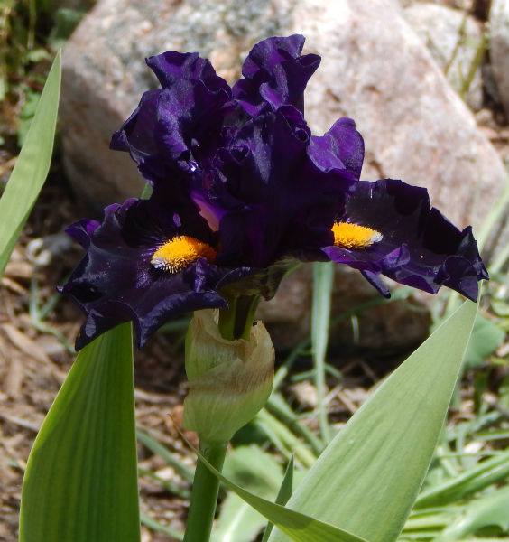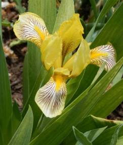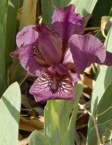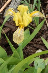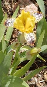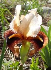 The first week in April brought lots of bloom. Pumila cultivars 'Wild Whispers' and 'Royal Wonder' put on a great show on established clumps, joined by 'Little Drummer Boy'. More new seedlings bloomed: I. pumila, I. attica, and I. suaveolens. Established clumps of I. suaveolens rubromarginata and I. reichenbachii put on a lovely show. A one-year-old grey-white Armenian pumila seedling with a dusky violet spot really caught my eye. The mysterious Vardar Gorge plant opened on April 7, along with its seedling. The first I. aphylla bloom opened on April 11. On the same day, I had an interesting pumila seedling with an orange cast and long, spider-like petals. A one-year-old Iris taochia raised from seed opened April 13. A couple one-year-old seedlings of I. reichenbachii bloomed by mid-April, and an established clump of I. schachtii started on April 15. A hard freeze the morning of the 17th wiped out most of what was in bloom. I. aphylla 'Slick' was waiting in the wings, opening on April 20, followed by 'Ahlburg' on the 22nd. Various other aphyllas bloomed around the same time. Another seedling opened on May 4 from seeds obtained as "Iris reichenbachii", but which appears to be Iris variegata. Two others from the same group of seeds opened later in the month. The last to bloom was I. pallida variegata, from late May through early June.