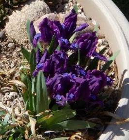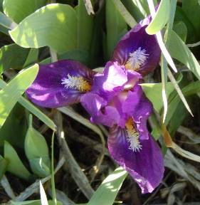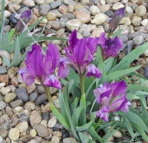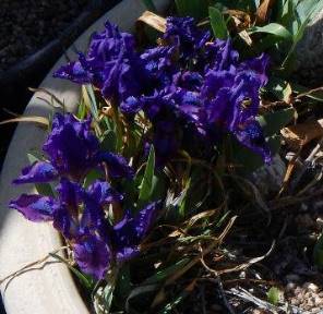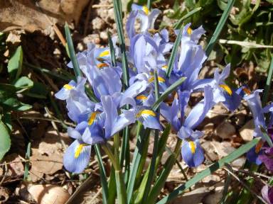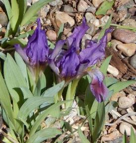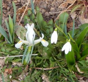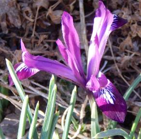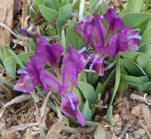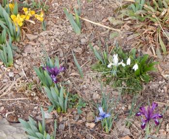 My reticulatas are mostly in a warm and sheltered bed along the front (southeast face) of the house, where they bloom four to six weeks ahead of those in the open garden - a welcome preview of spring. Iris bloom started on with Iris danfordiae February 8, during an unusually warm spell following heavy snowfall a week before. 'Purple Gem' opened on the 11th, soon followed by 'Natascha' and 'Cantab'. The last week of February was cold and snowy, which slowed things down for awhile. The first two weeks of March were warm and sunny, and 'Katharine Hodgkin' bloomed nicely in the open garden, along with more 'Natascha'.
