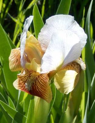 'Loudmouth' opened in mid-April, starting off the arilbred season. On May 4, I had maiden bloom on an arilbred dwarf seedling from my cross of 'Aztec Prince' X I. pumila "clausii". A keeper! 'Desert Snow' opened on May 5, followed quickly by 'Peresh' and my two other 'Aztec Prince' X I. pumila seedlings that had had their maiden bloom in 2015. Deliciously veined 'Jonnye's Magic' opened May 11, followed by 'Eye To Eye'. The weekend brought on the two stunners 'Shaman's Magic' and 'Silent Sentry', as well as a pleasing arilbred median seedling from 'Bluebeard's Ghost' X 'Noble Warrior'. 'Iridescent Orange' and 'Bhutan' both opened on May 21.