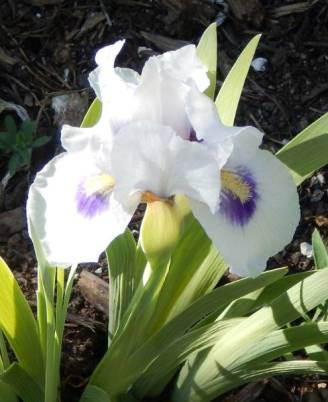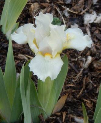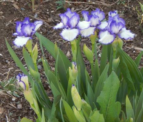 MDB 'Dollop of Cream' bloomed on April 12. Almost two weeks later, MDB 'Icon' and SDB 'Abuzz With Charm' came into bloom. 'Kaching' opened on April 26. The first of the tetraploid medians, 'Saucy', opened May 1 in cold rainy weather. SDB 'Eye of the Tiger' and IB 'Rimaround' followed on May 3. A rather pleasing SDB-like seedling from 'Points West' X I. pumila bloomed on May 5. SPEC-X 'Night Mood' followed on the 7th. IB 'Starfield' opened on the 10th. The following weekend brought out IB 'Dazzling', SPEC-X 'Date With Destiny', and MTBs 'Hot News' and 'Tic Tac Toe'. 'Bundle of Love' opened on Monday the 16th, followed by 'Sultry Dreams' the following day. Two elegant medians opened on May 23, MTB 'Silver Ice' and BB 'Sprint'. MTB 'Rayos Adentro' rounded out the season the last week of May.