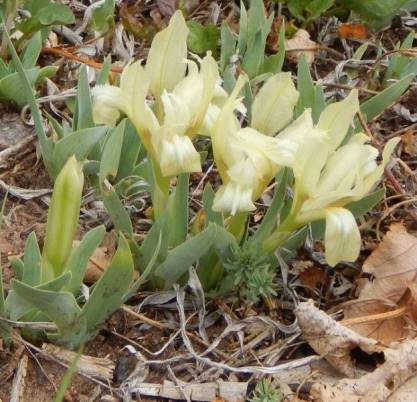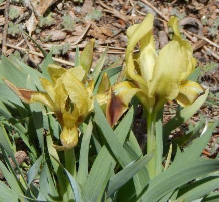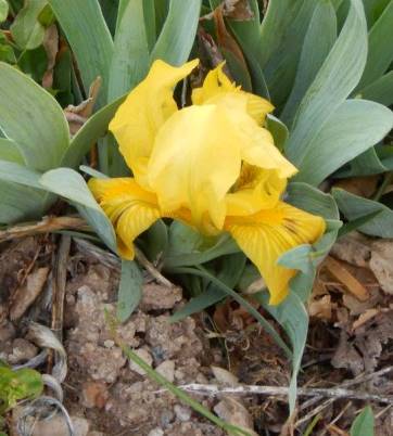 The first Iris pumila to bloom this year was the Armenian seedling P002-05, with a single smallish bloom, on March 16. This was followed on March 21 by the I. pumila from Wild Ginger farms, with multiple blooms that all seemed a little small and cold damaged. The weather turned nasty the next day, temperatures in the 20s or even lower, and high winds. I. pumila 'Keystone Oracle' opened on March 30. With nighttime temperatures again dipping well below freezing, I began to wonder if that was all there'd be of pumila season this year. On April 6, two pumilas from Carol Coleman popped into bloom: 'Wild Whispers' and 'Royal Wonder'. Two I. taurica seedlings (raised from seed obtained from Vojtech Holubec) opened on April 8, followed by 'Little Drummer Boy' on April 10. The Vardar Gorge plant opened on April 12, about a week earlier than last year, the first non-pumila bearded iris this year. Rain and cold slowed things down a bit, but I. pumila taurica and I. reichenbachii opened on April 15. More pumila seedlings bloomed the following week. P011-01 ("clausii" x I. pumila aequiloba) bloomed without the orange cast it had last year, along with a somewhat more refined sibling. The unusual grayish Armenian pumila P002-13 bloomed every bit as nice as in 2015. The first I. aphylla opened on April 24. The last week of April saw some second-year seedlings bloom: I. subbiflora, I. taochia (questionable), and S006-01, a cross of I. aphylla X I. pumila. The end of April and the beginning of May was cold and rainy, but more I. reichenbachii bloomed, along with a striking I. junonia from seeds from an Archibald collection. I. aphylla 'Ahlburg' was very showy in a huge clump this year. 'Slick' opened May 3. A couple attractive I. aphylla seedlings from the MIS seed exchange bloomed the first week in May. I. croatica from the BIS seed exchanged bloomed May 14, impressive but a bit suspect on account of the yellow beards. Likewise, a seedling purporting to be I. cypriana seems doubtful.