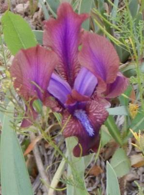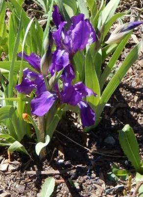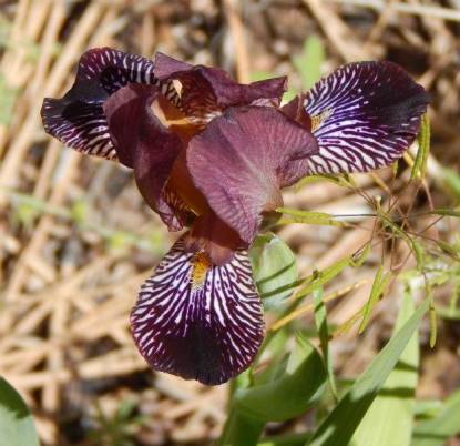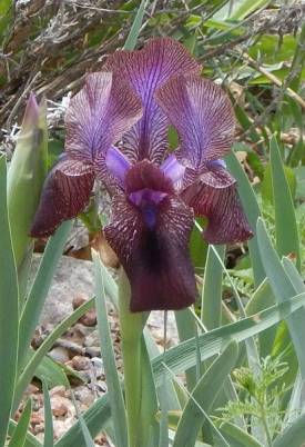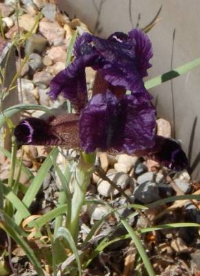 I. paradoxa atrata ushered in aril season, with a rather bedraggled bloom opening on April 15. 'Merlin's Magic' came along next, opening on April 20. 'Orion' and 'Tadzhiki Bandit' opened on the 23rd, followed by 'Werckmeister's Beauty' on the 25th. 'Dunshanbe' opened May 2 after a cold rainy weekend. I. stolonifera 'Network' opened May 5, followed the next day by another form of I. paradoxa and tetraploid aril 'Ballaika Music', which had not bloomed here before. Two other forms of I. stolonifera also bloomed: 'Chocolate', and an unusual one from Paul Christian Rare Plants with a flower resembling a garden bearded iris. 'Vera' was the last to bloom, as she was last year, opening on May 16.