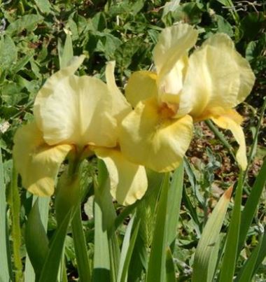 Two irises I introduced for Gus Seligmann in 1983. 'Catchy Name' and 'Satan's Mistress' ushered in TB season on May 11, followed by historic 'Swerti', arousing controvery because the first bloom didn't show the twisted form characteristic of this cultivar. The historic rebloomer 'Summer Whitewings' opened May 14. Small-flowered TB 'Are You Crazy' opened May 21. 'Montmartre' opened on May 29, and 'Brazilian Art' finished out the bearded iris season the first week of June.