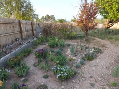 Except for the seedling bed, my irises are all interplanted with other ornamentals. I use native and waterwise plants as companions to the irises, such as penstemons, salvia, alliums, sempervivums, sedums, and so on. I use only organic fertilizers, bagged compost mostly, as well as Yum Yum Mix, a blend of cottonseed, alfalfa, and minerals.