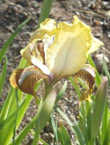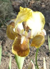 Most growers of this cultivar seem to regard it as an arilbred; its growth habit suggests it may be an RB+. Strangely, though, a chromosome count by Freeman Yendall (ASI Yearbook 1970) gave 2n=43, a result hard to explain if a set of TB chromosomes is present. I have therefore listed it among the tetraploid arils, although with considerable reservation. The flower is not typical of Iris stolonifera; there are no beards on the standards and the fall beards are very thick and bushy, as seen in bearded irises.