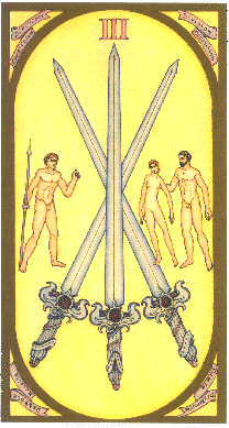 Swords; 2 = Knight of Coins and 3 = Seven of Swords.