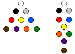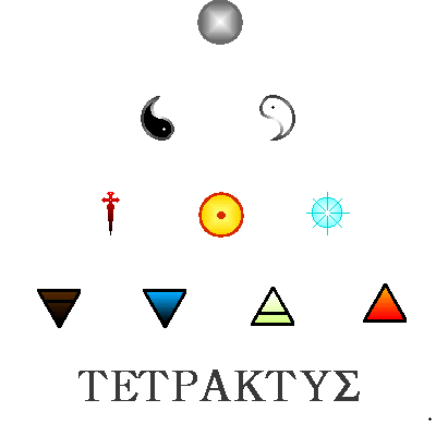 The description given here is a personal elaboration of these ideas for use with the tarot, based on the tetraktys spread from A Renaissance Tarot by Brian Williams. The cards should be laid out, one row at a time, going from top to bottom and right to left. To read the spread, turn over one row at a time, beginning with the bottom row and working upward. Tetrad: The Material WorldThe cards of the bottom row represent concrete situations in one's life, including events, thoughts, and emotions. This is a snapshot of the issue in question, viewed from four different directions, invoking four different cognitive functions or orientations of personality. From right to left, the positions are Fire: One's creative energies, initiative, will, and desire for control. This card addresses the questions, "What do I want? How am I trying to achieve it? What is aiding or interfering with motion toward my goals?" Fire is the pure force of the personality, untainted by structures and complications, outgoing, aggressive, and uncompromising. It is pure purpose. Air: One's thoughts, strategies, and concepts. This card addresses the questions, "What is my analysis of the situation? How do I conceive of things? What plans am I formulating? What is aiding or interfering with the clarity of my thought?" As with fire, air represents the impulse to control, but it is now tempered by the constraints of logic and objectivity. Comparing the cards that appear in the air and fire positions may illuminate the difference between your inner desires and the conditions needed for a sustainable solution. Water: One's feelings, emotions, and moods. This card addresses the questions, "What are my feelings? How do I respond emotionally? What do I love? What is aiding or interfering with my experiencing love and happiness?" Unlike fire and air, water is a heavy element. It can signify attachments, things that draw us inward toward security, rather than outward toward adventure. It can also show subconscious feelings or intuitive impressions. Earth: Practical matters, daily routine, obligations. This card addresses the questions, "What am I attending to? What gives me stability and continuity? What keeps me grounded? What is aiding or interfering with my being secure and safe?" Whereas water is tempered by the outgoing passions of the heart, earth is purely protective. It stands for the security of hearth and home, and one's financial and practical resources. Taken together, these four cards represent the opportunities, conflicts, and interrelationships among the different spheres of your life. They may indicate barriers in some areas, balanced by progress in others. They tend to be descriptive, rather than judgmental. It is worthwhile to study this row for awhile before revealing the other cards, concentrating on possible courses of action that acknowledge the situations depicted in each of the four elemental cards. Triad: The Spiritual ForcesThe three cards of the second row show your situation as part of the continuing cosmic drama. All stories have a beginning, a middle and an end. This row is the script, the plot outline, which connects and explains the "scenes" depicted on the bottom row. From right to left, the positions are Creator: The agency through which new things are being brought into being. This card addresses the questions, "What is driving me in new directions? What is the energy behind my desires and plans? What is pulling me out of my old habits?" Remember that problems, not just positive experiences, can stir up new opportunities. This card stands above the fire and air cards. This small triangle within the larger triangle of the spread represents the universe's continual drive for novelty, as reflected in the microcosm of the personality. The creator is pumping new situations and purposes into your life; the fire card is the internal urge to act out the creative force; the air card is your means of understanding and managing it. Sustainer: The agency through which you find equilibrium in the midst of change. This card addresses the questions, "What is helping me maintain balance? Where is the stationary point from which I can observe and handle all the different factors?" Many of us make choices by relying heavily on one of the modes of functioning depicted in the bottom row: our purposes, our concepts, our emotions, or our practical obligations. The sustainer stands above all these separate approaches, surveying and appreciating them all. The sustainer takes the exuberant raw energy of the creator and gives it structure, shaping it into something of more lasting value. Like the creator, the sustainer also rests at the top of a small triangle, presiding over air and water, representing the impartial balancing of the objective, intellectual, proactive approach with the subjective, emotional, and reactive. Destroyer: The agency through which old things are consumed and dissolved. This card addressed the questions, "What is reducing my options, what is laying down the rules and punishing me when I violate them?" Endings are frightening. Limitations are frustrating and painful. But it is these things that provide the structure, the frame, within which the story unfolds. If every possibility in the mind of the creator were made permanent by the sustainer, life would become overloaded and unlivable. The destroyer discards what is not meant to be and what has outlived its time, thus keeping the entire cycle in motion. The destroyer stands over the elements of water and earth, establishing the fixed forms of the practical world and the feelings through which we become related to those forms. The spiritual forces give us a deeper understanding of the material elements. Earth springs from the destroyer, fire from the creator. Thus, earth is a pure expression of inanimate structure, and fire is a pure expression of uninhibited impulse. Water is an offspring of the destroyer and sustainer, receiving bodily grounding f